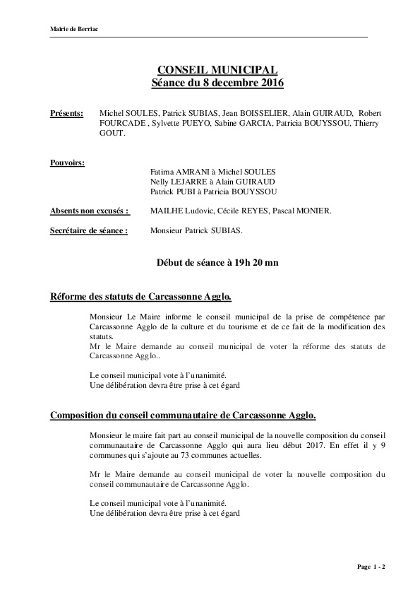 Compte rendu conseil du 08.12.2016