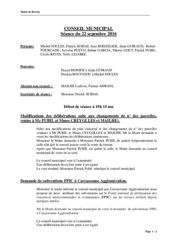 Compte rendu conseil du 22.09.2016