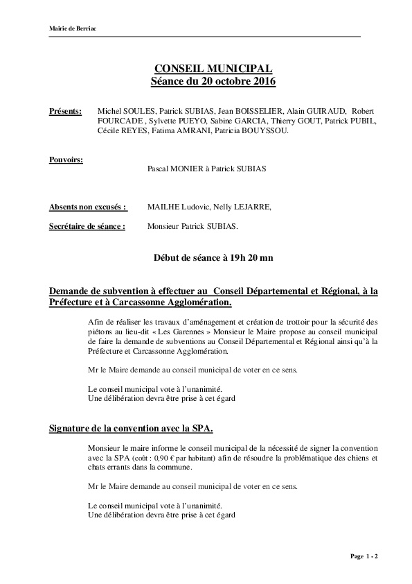 Compte rendu conseil du 20.10.2016