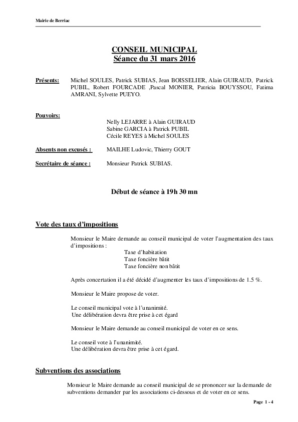 Compte rendu conseil du 31.03.2016