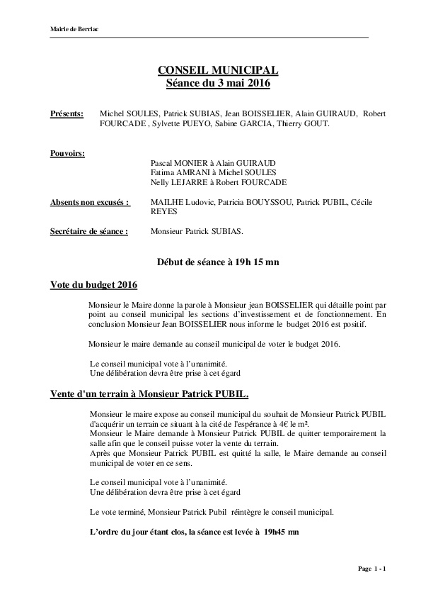 Compte rendu conseil du 03.05.2016
