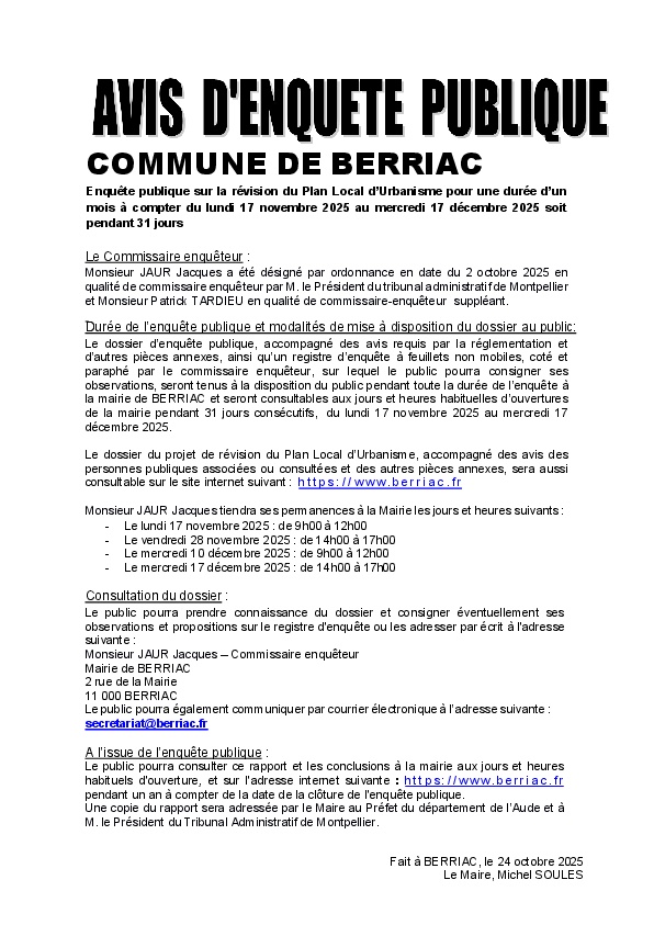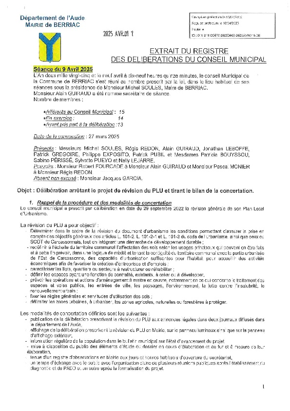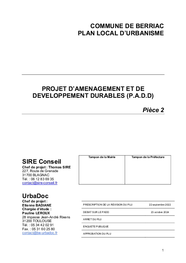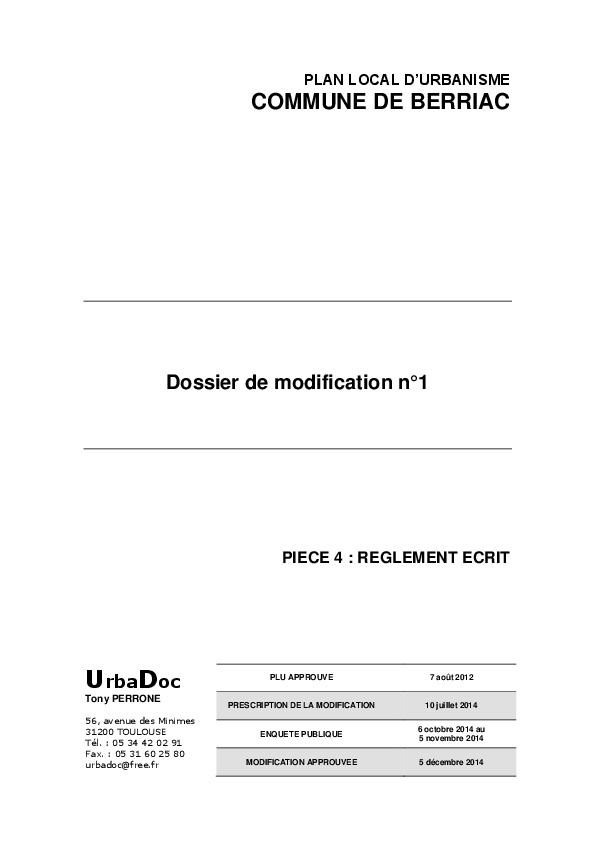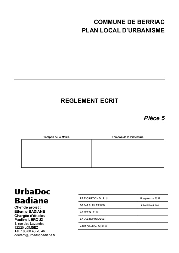 PLAN LOCAL D'URBANISME DE LA COMMUNE DE BERRIAC